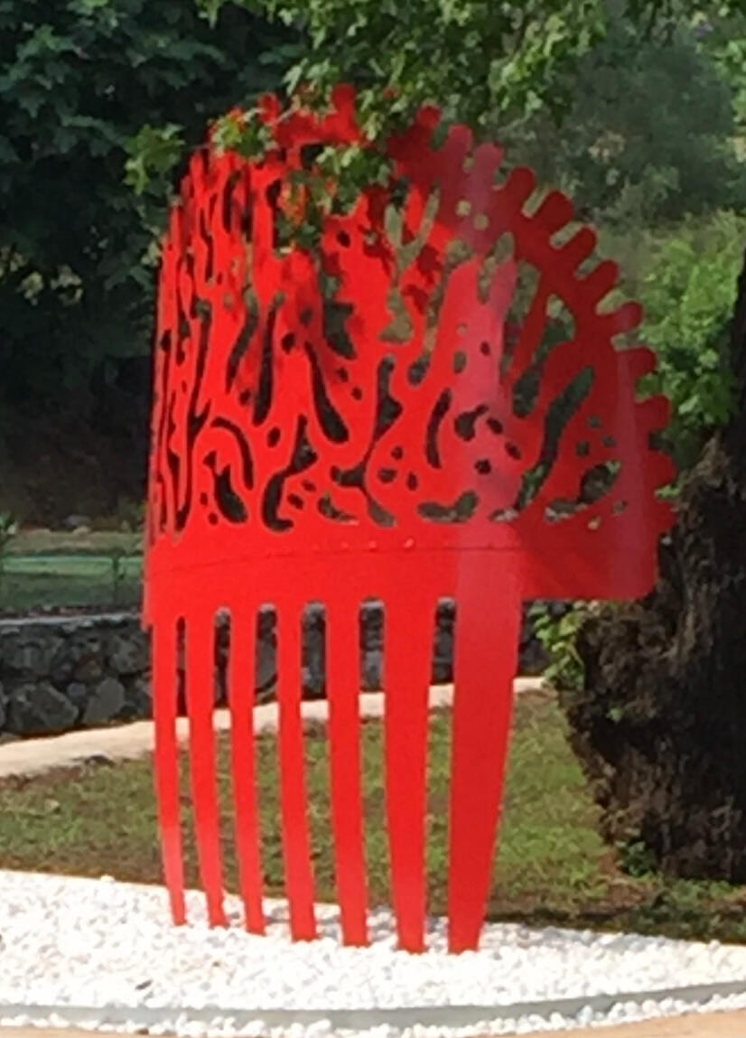 Crying CrownMade of aluminum and paint, its dimentions are 170 x 50 x h: 240 cmThis sculpture is one of the works focused on Akay’s autobiographical past, displaying a family relic that is surrealistically revived in a metal sculpture in the memory of her grandmother.