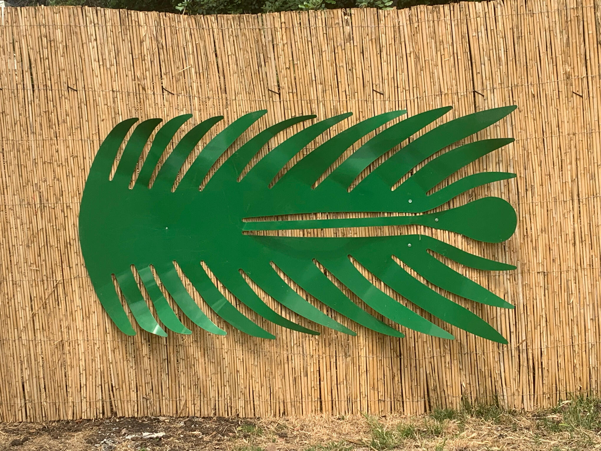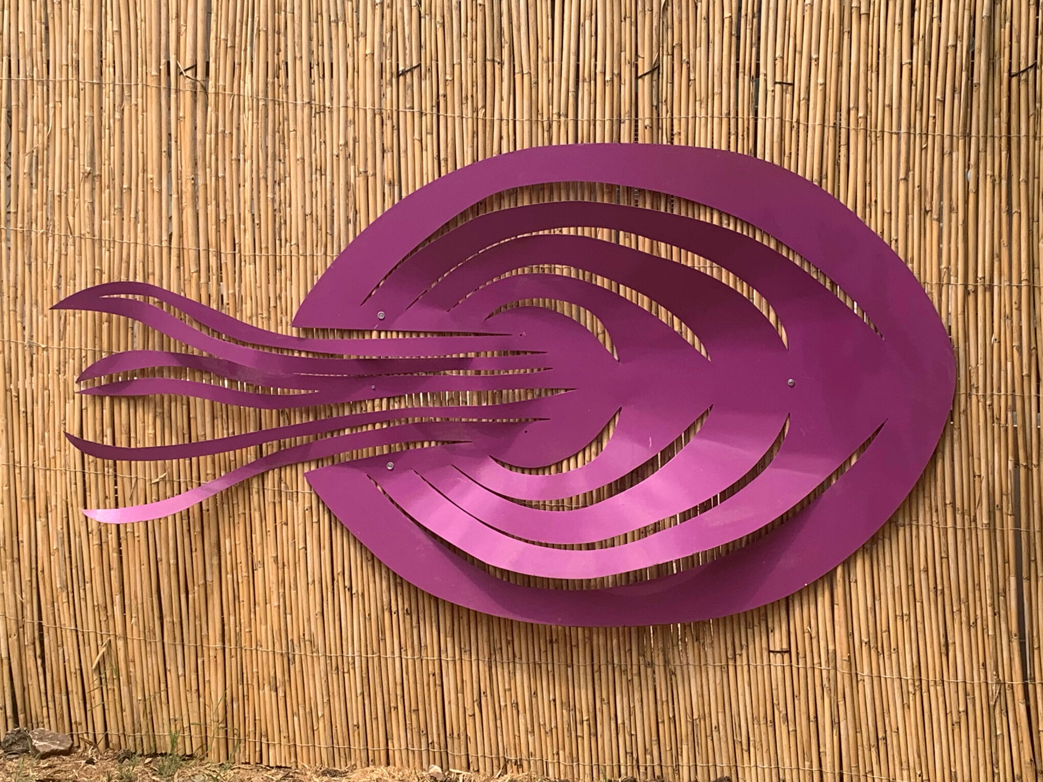 Plant Kingdom GuardianMade of aluminum and paint, its dimentions are 120 x 220 x h: 20 cm and it is about honoring plant and animal kingdoms.