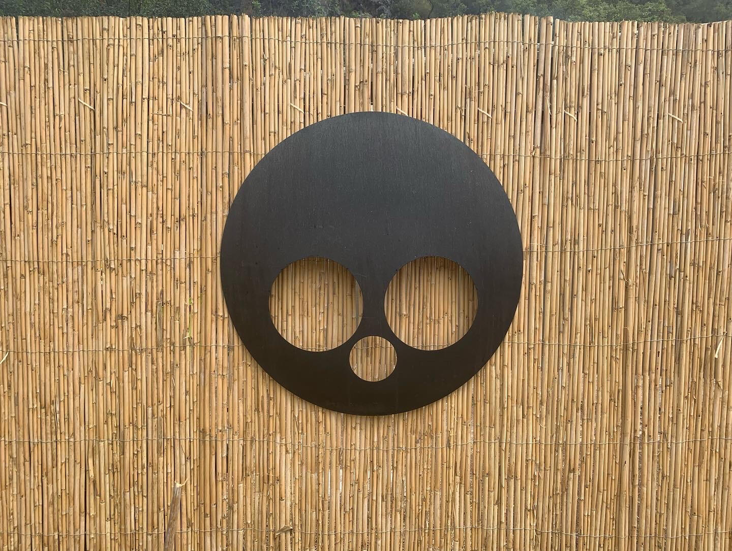 Chintemani (three dots) MotifMade of aluminum and paint, its dimentions are 100 x 100 x h:12 cm.The material for this series is the “sac”, the traditional flat bread making pan and is to honor the Anatolian women’s labour.